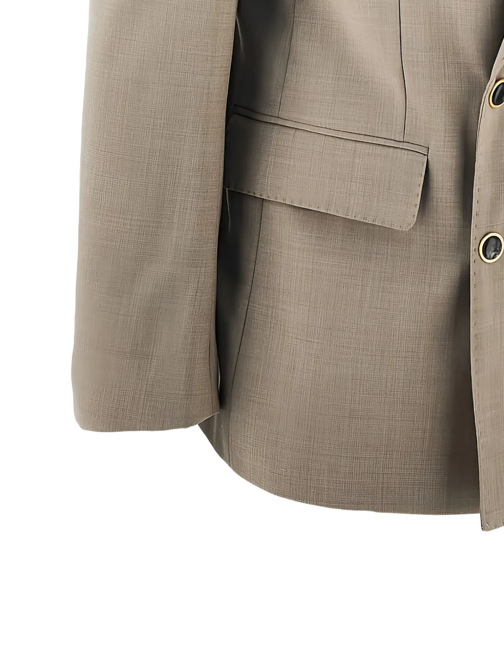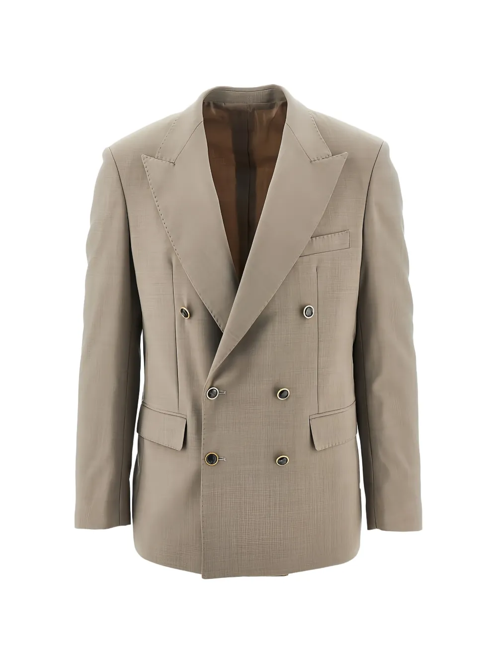 beige double-breasted button fastening front flap pockets notched lapels
