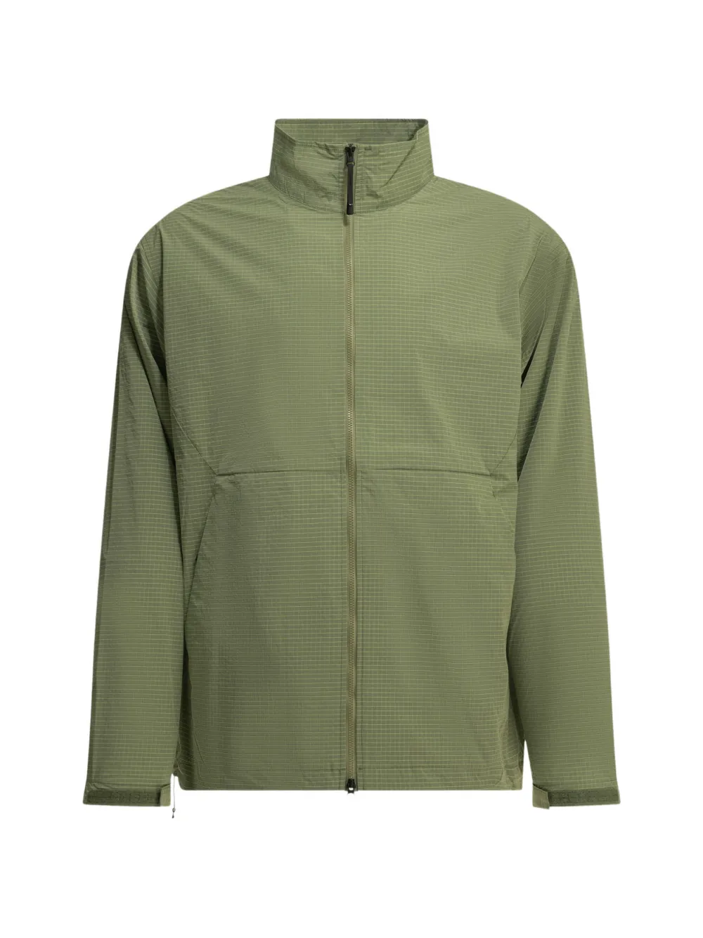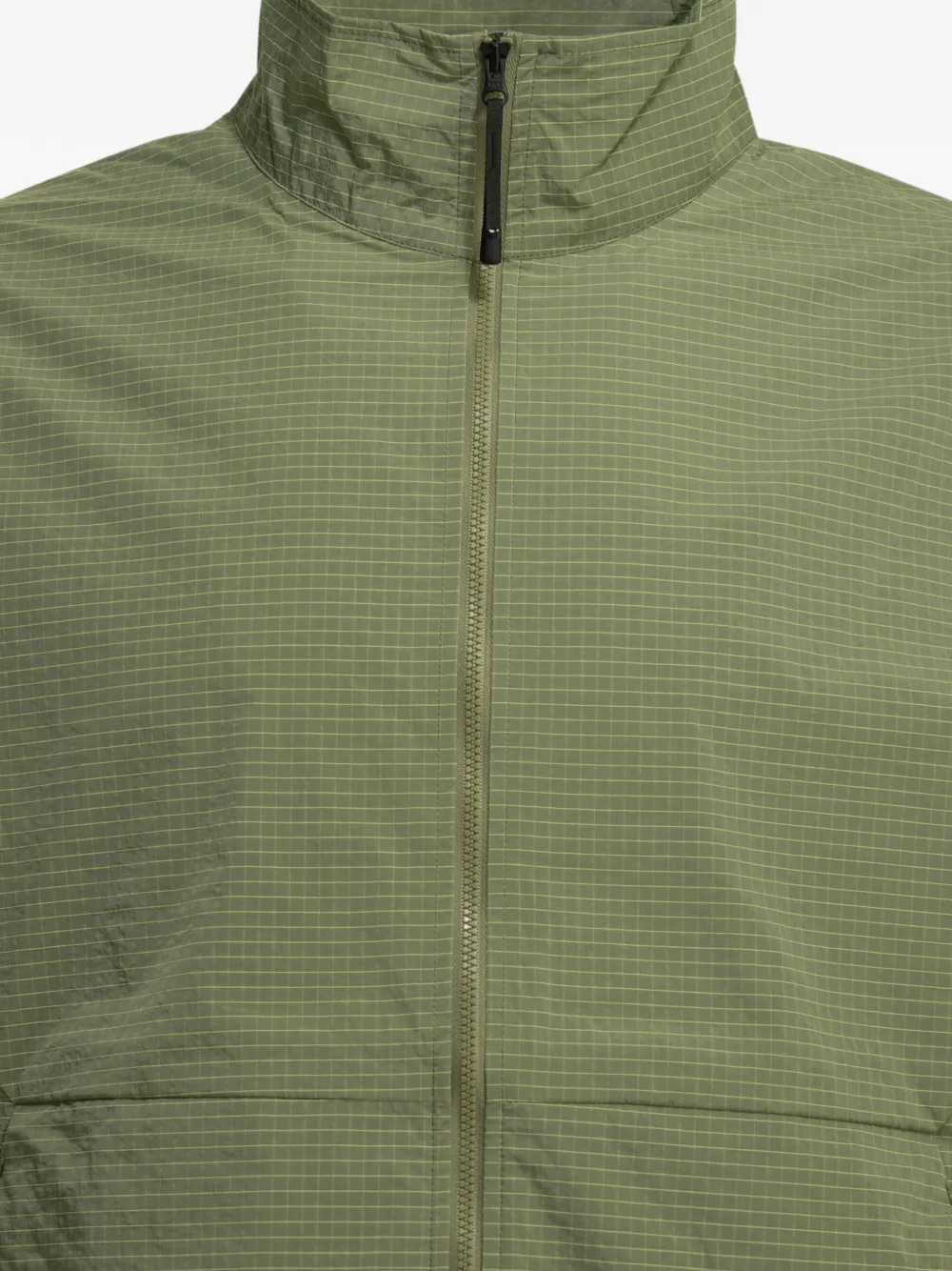 grid-pattern high-neck windbreaker