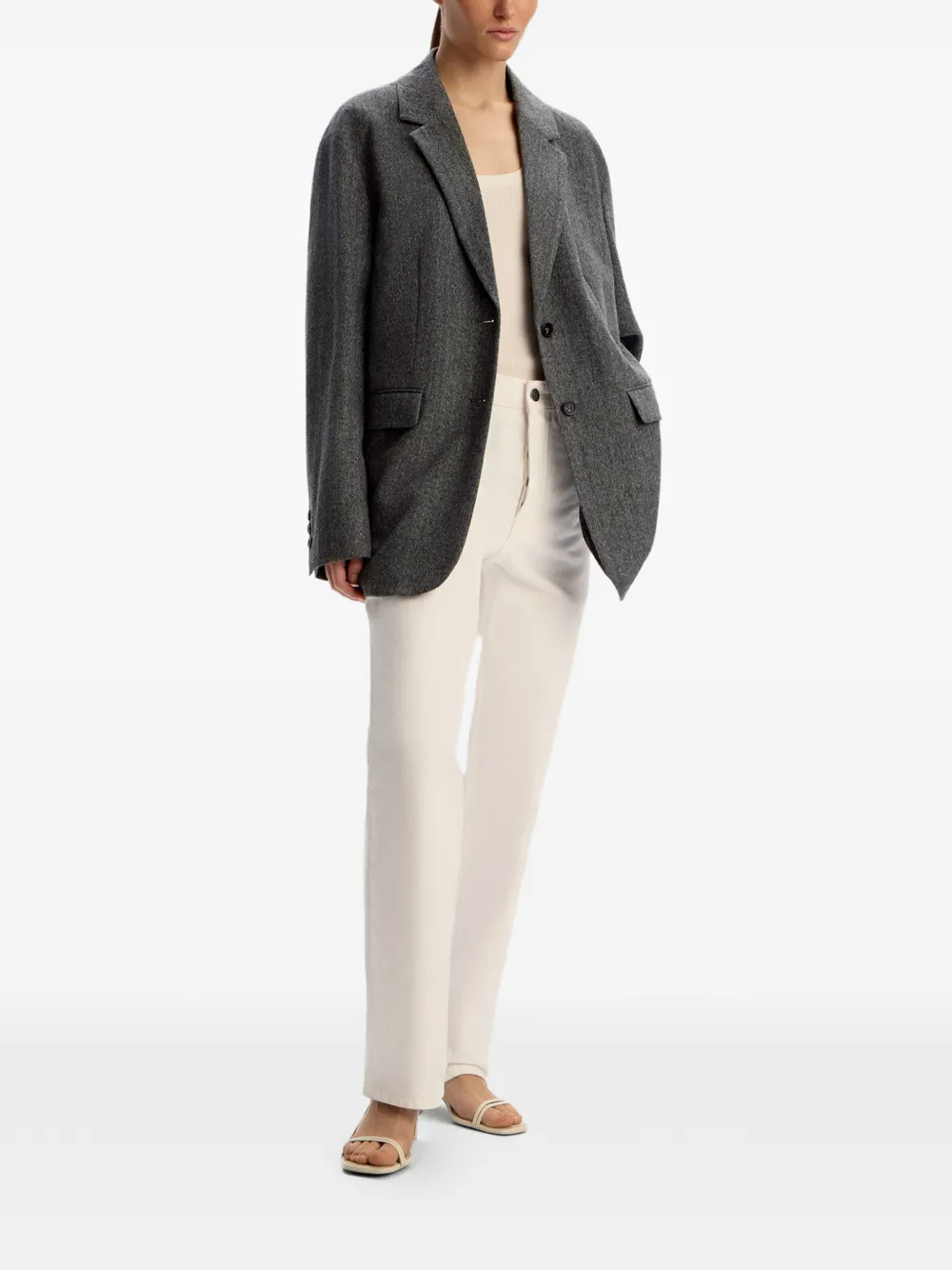 herringbone-pattern single-breasted blazer
