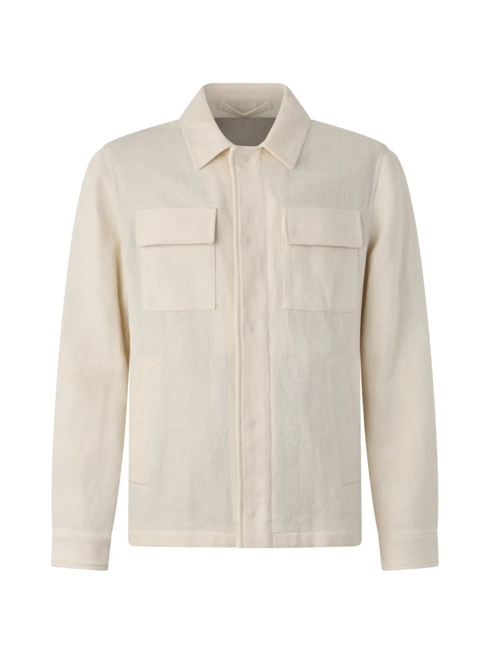white front closure two chest pockets long sleeves