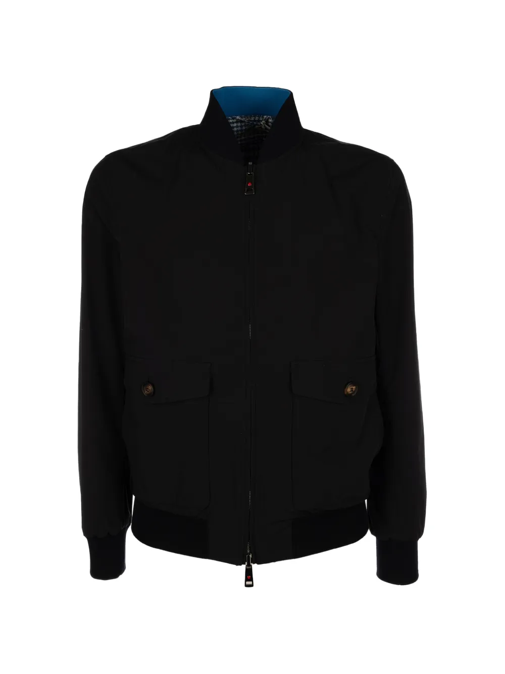 deep blue button pockets zip closure ribbed trims