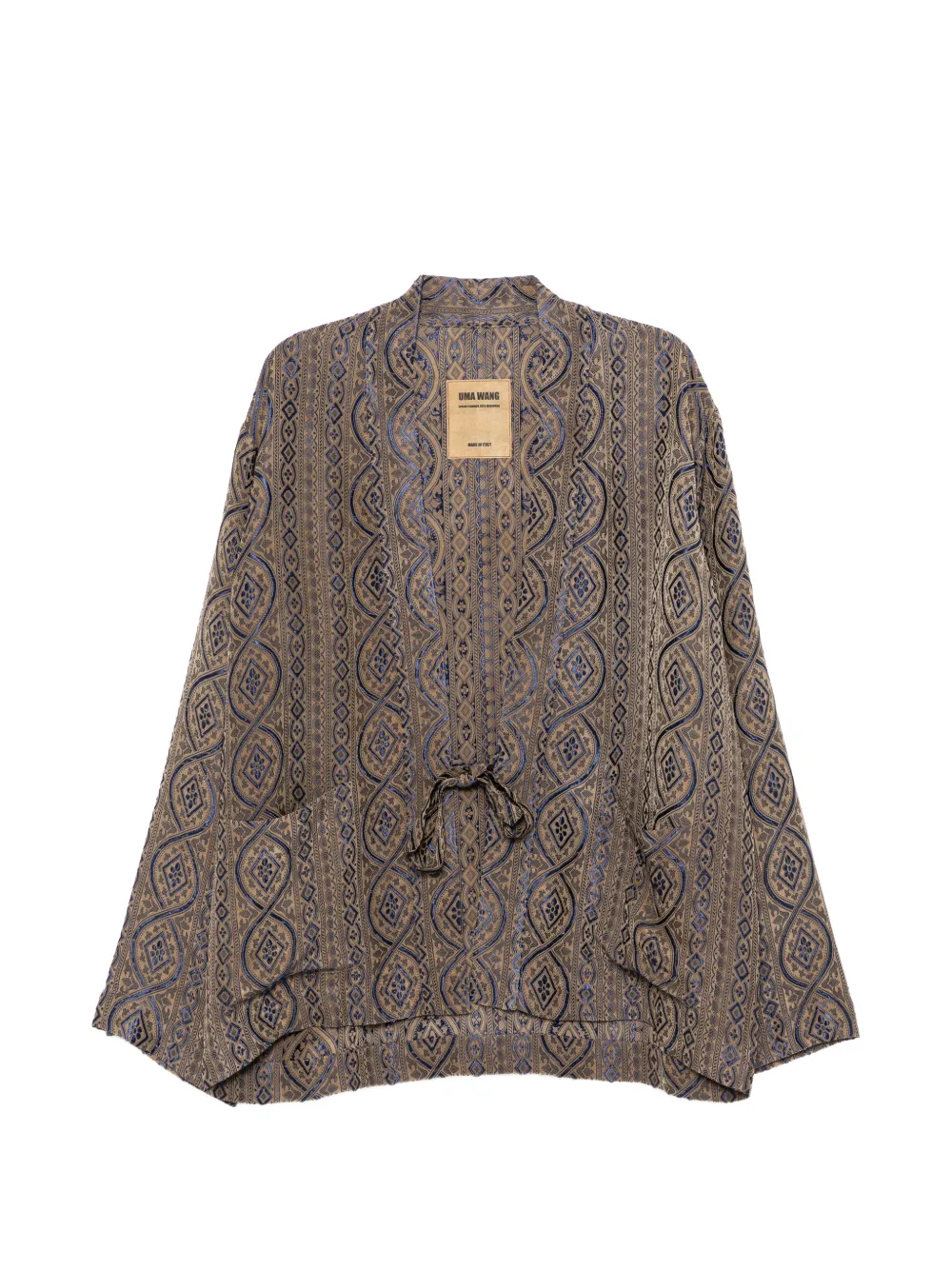 navy blue patterned drawstring front pockets no collar long sleeves