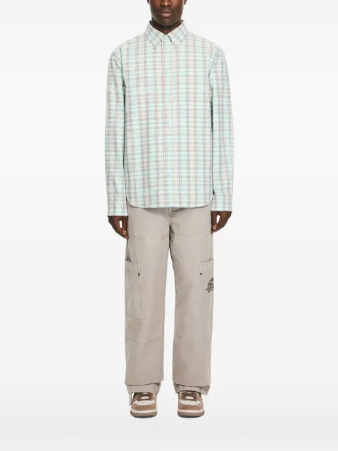 Off-White shirts capture the label’s streetwear aesthetic. Through workwear-inspired silhouettes, flannel patterns and distressed denim, designs are a blend of utility and sportswear. The signature Arrows motif features on oversized designs, while colorful graphic prints decorate long-sleeve styles. Pair boxy logo-embroidered shirts in black or white with Off-White pants from our Off-White clothing selection.
