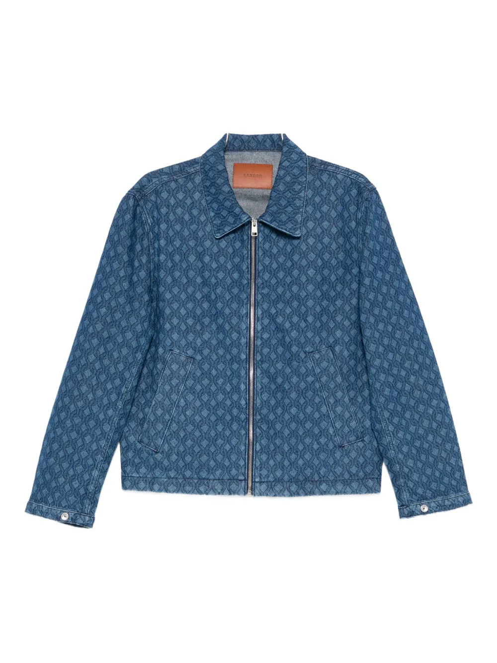 patterned zip-front denim jacket
