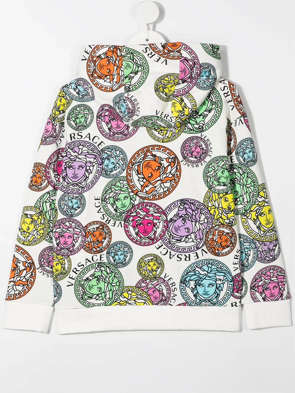 Motivo a testa di Medusa, cappuccio e maniche lunghe. Materiale: cotone.