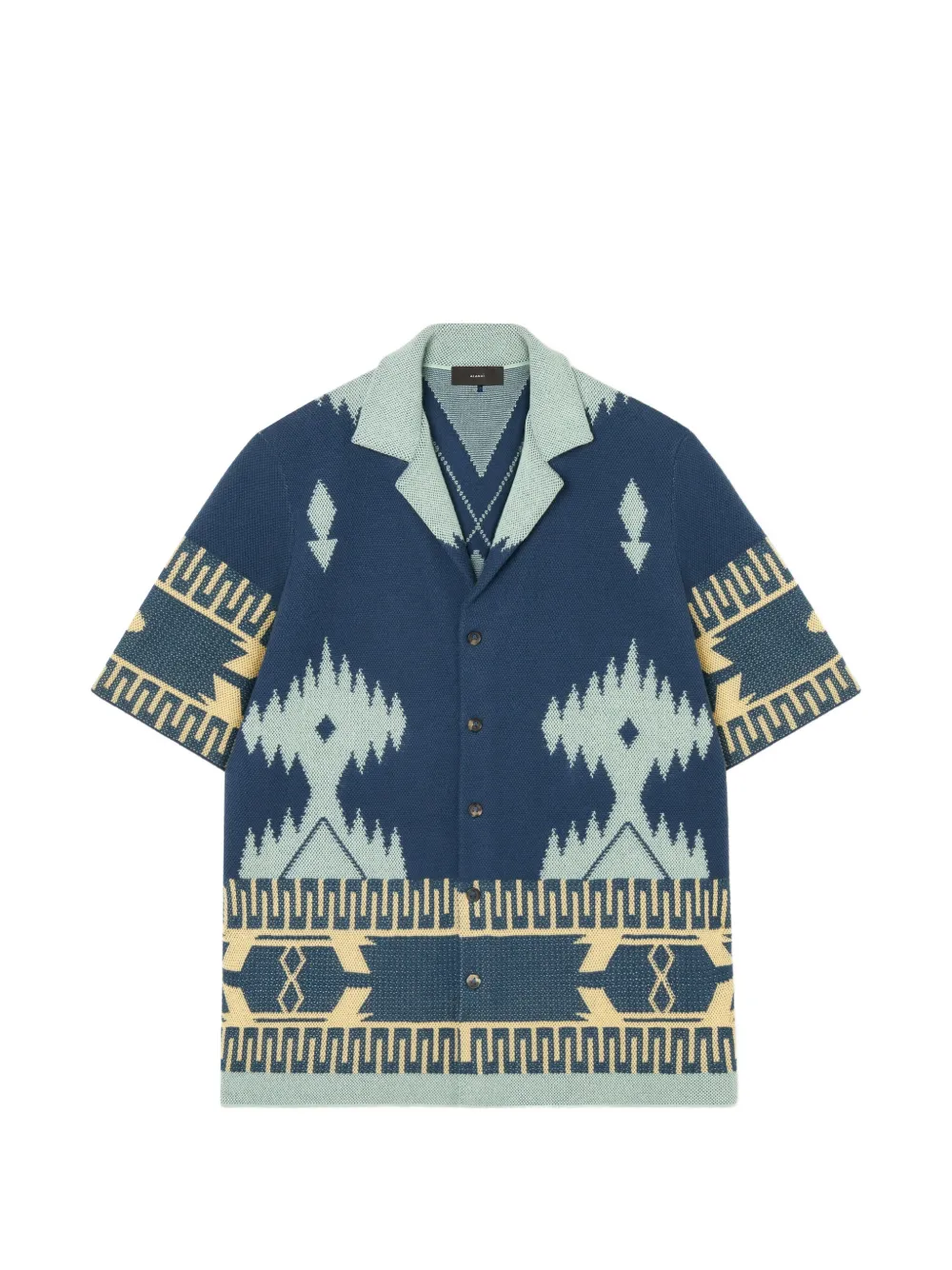 light blue geometric patterned short sleeves button fastening