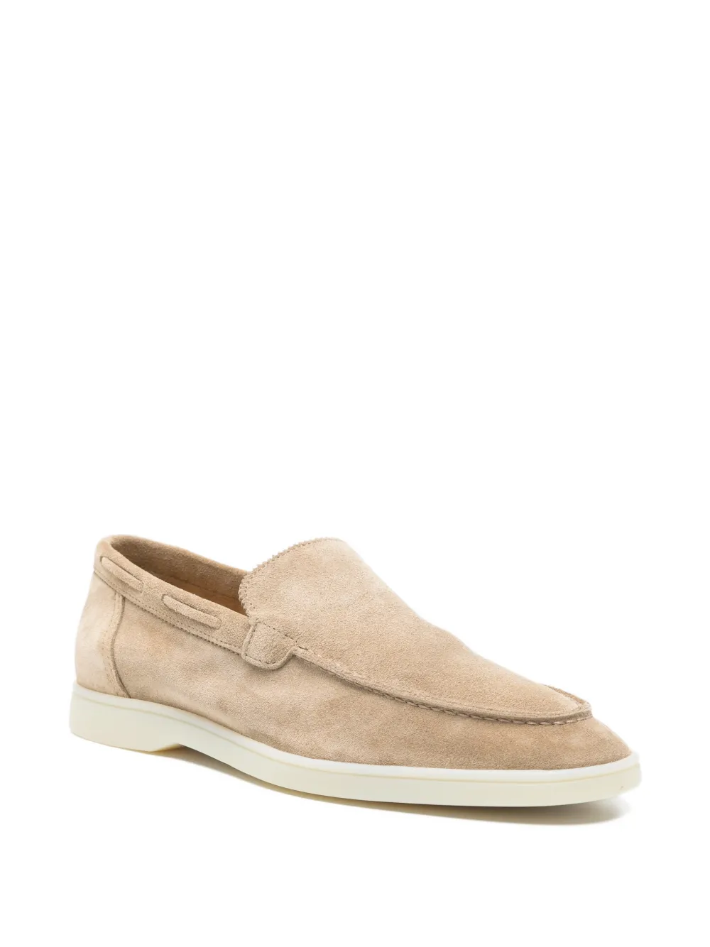 dark beige suede leather slip-on style almond toe flat rubber sole