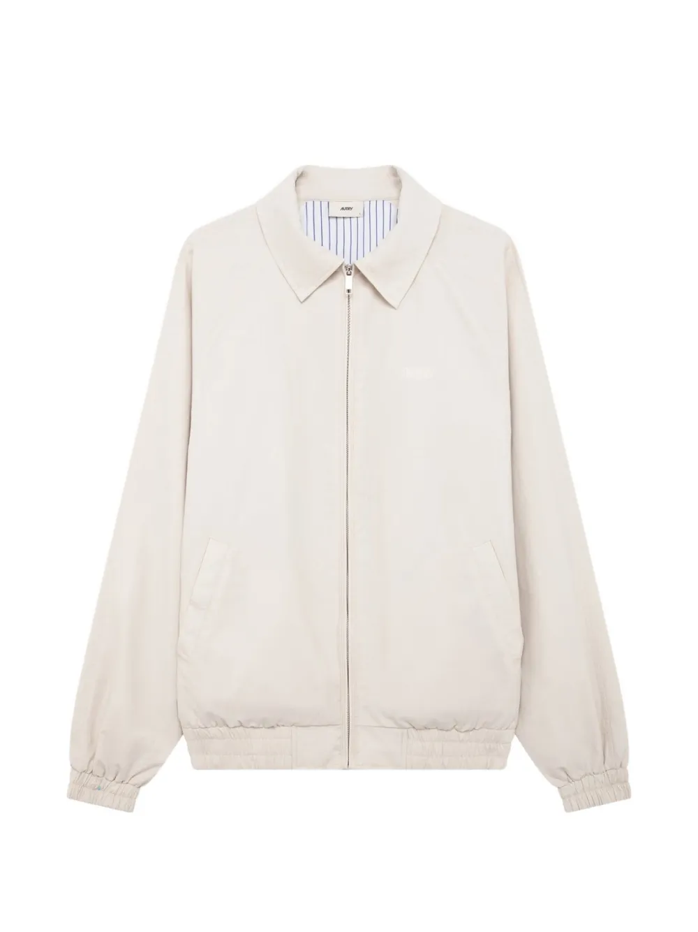 white zip fastening elasticated hem long sleeves side pockets