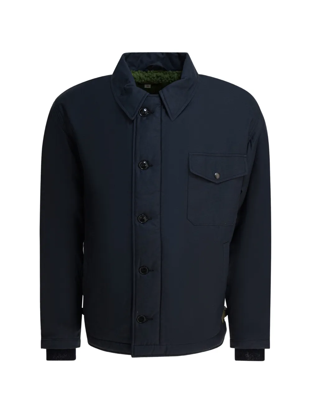 blue patch pocket button fastening spread collar long sleeves wool