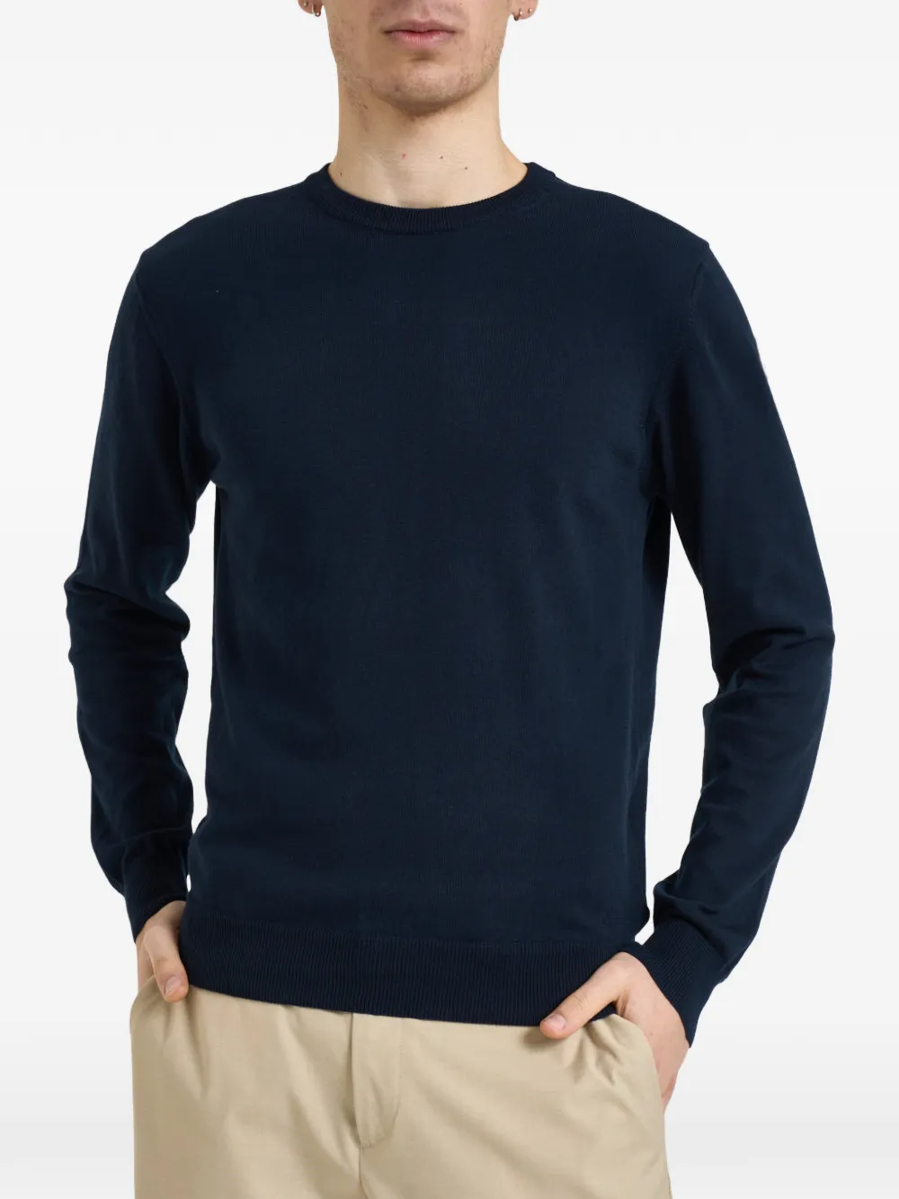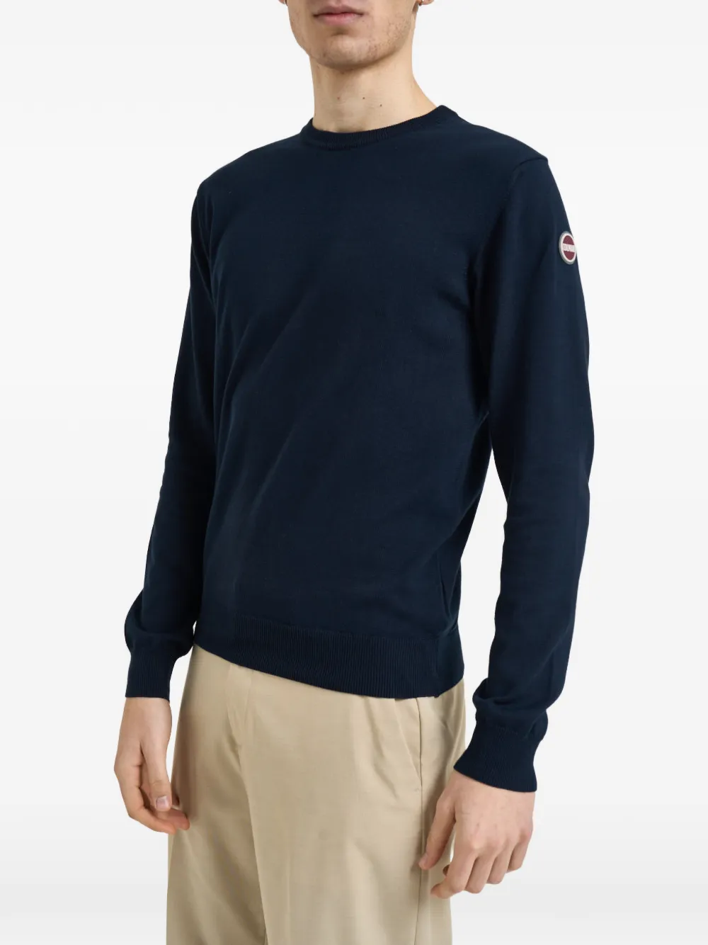blue logo patch crew neck long sleeves ribbed hem ribbed cuffs