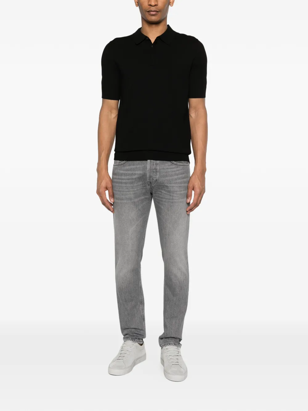 grey button fastening belt loops five pockets