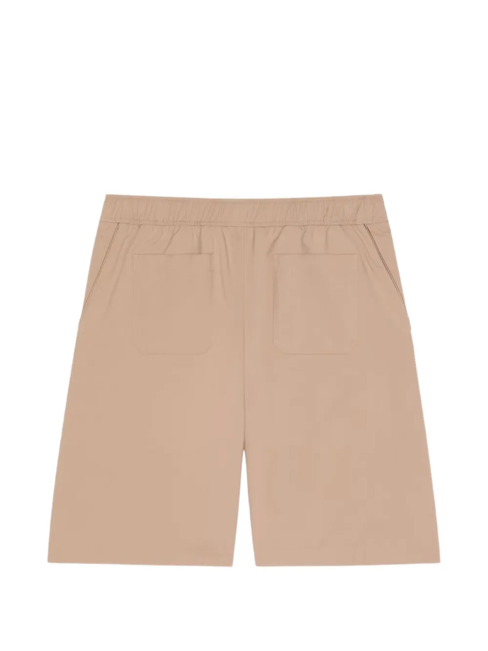 beige elasticated waistband logo print to the front two side welt pockets two rear patch pockets straight hem