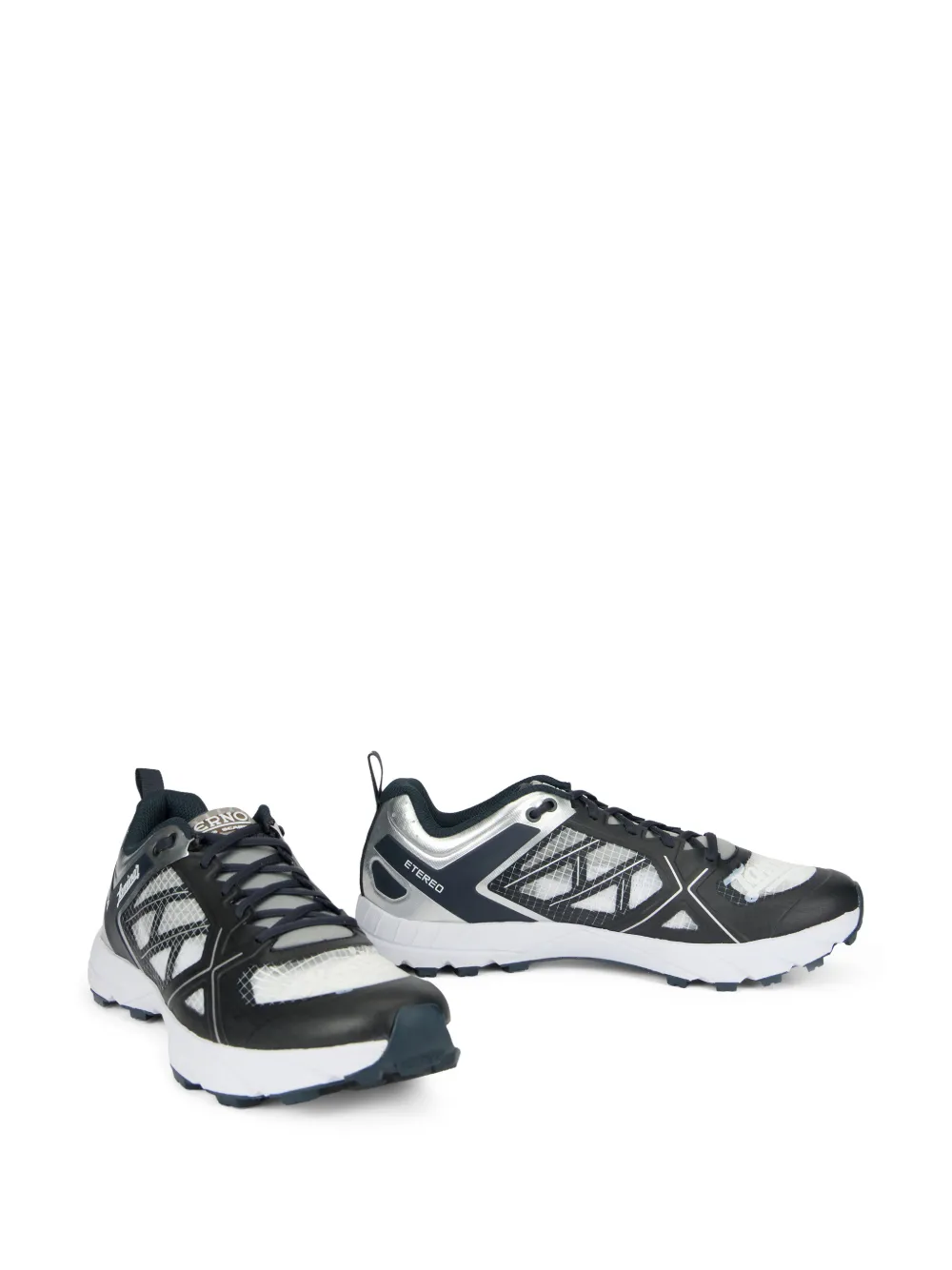 dark blue, black and white pull-tab at the heel metallic panel round toe lace-up fastening