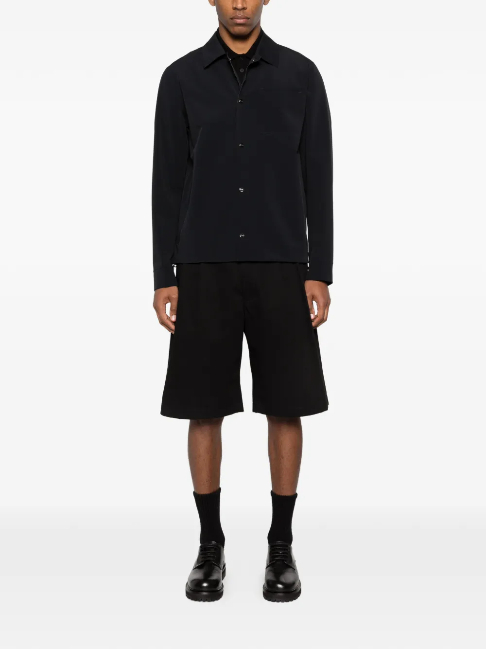black chest pocket button fastening long sleeves straight hem shirt collar