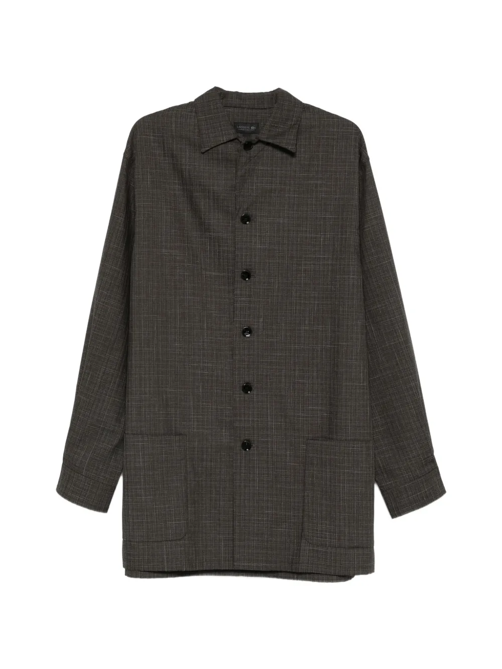 brown check pattern front button fastening classic collar long sleeves two front patch pockets