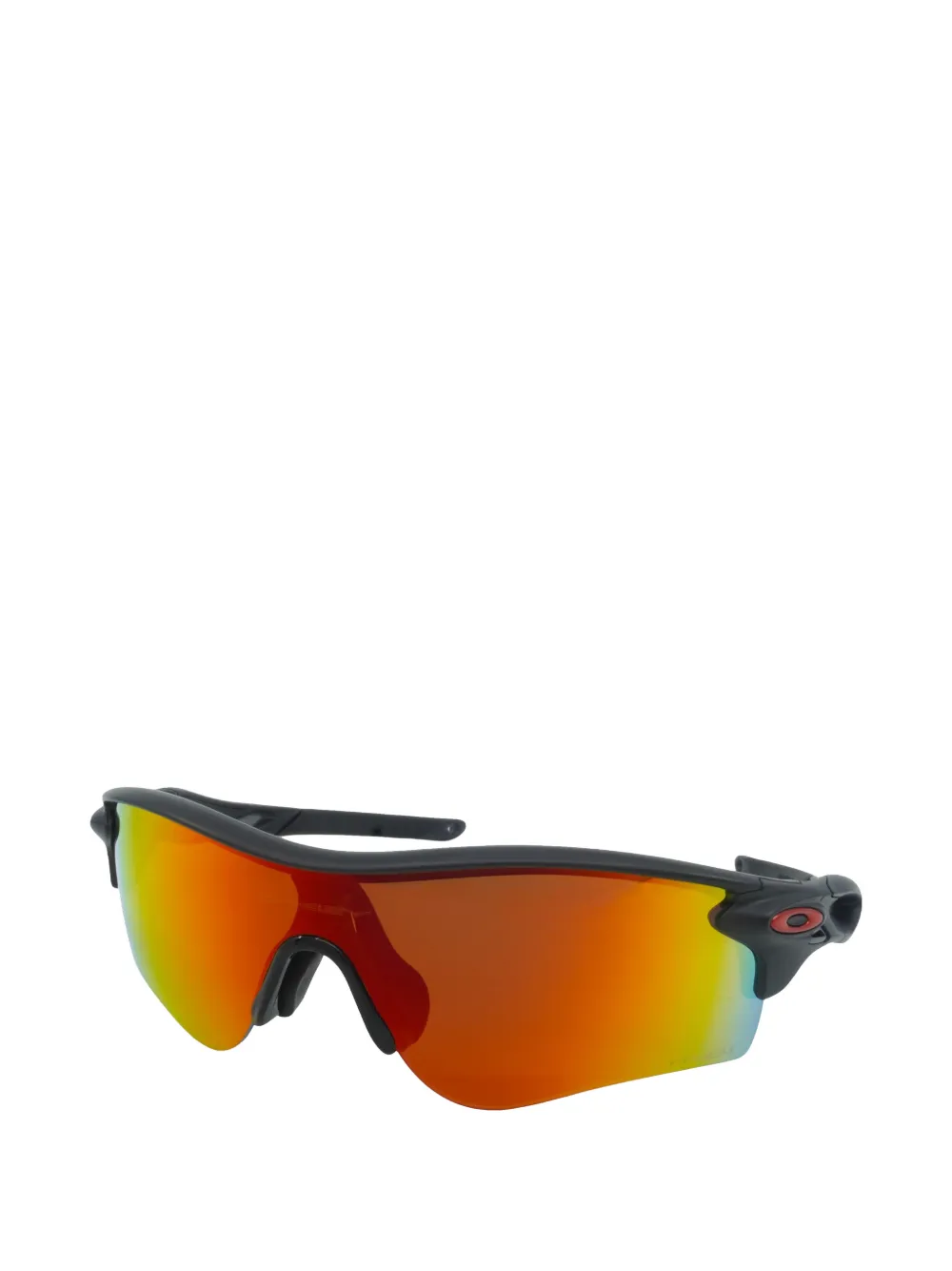 orange matte finish geometric frame Prizm ruby tinted-lenses logo-plaque at the temple nose pads straight arms curved tips These glasses come with a protective case.