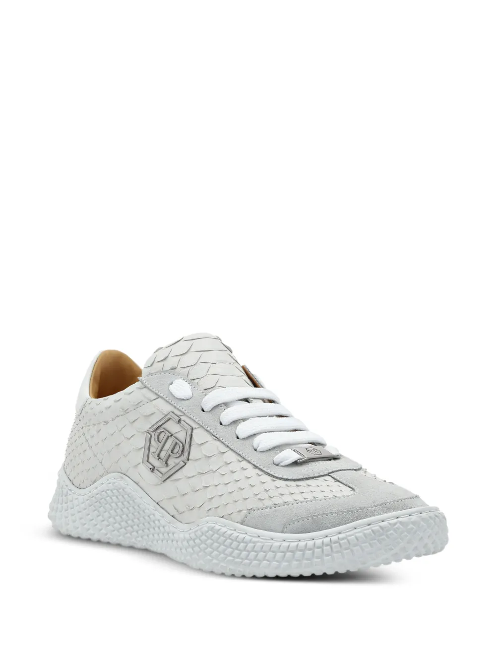 python-leather suede-trim sneakers