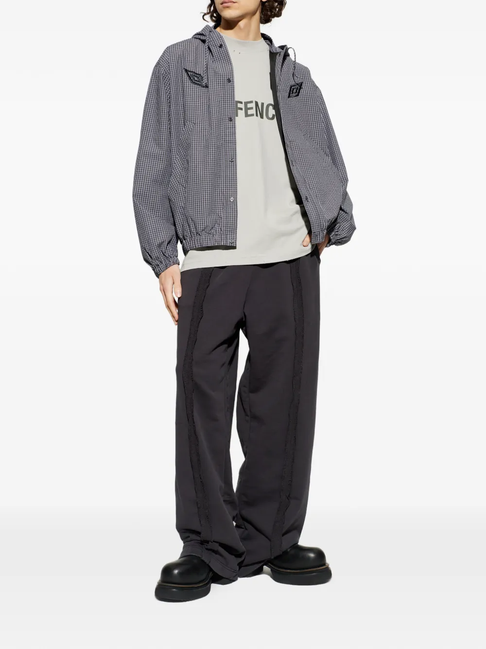 hooded check-pattern jacket