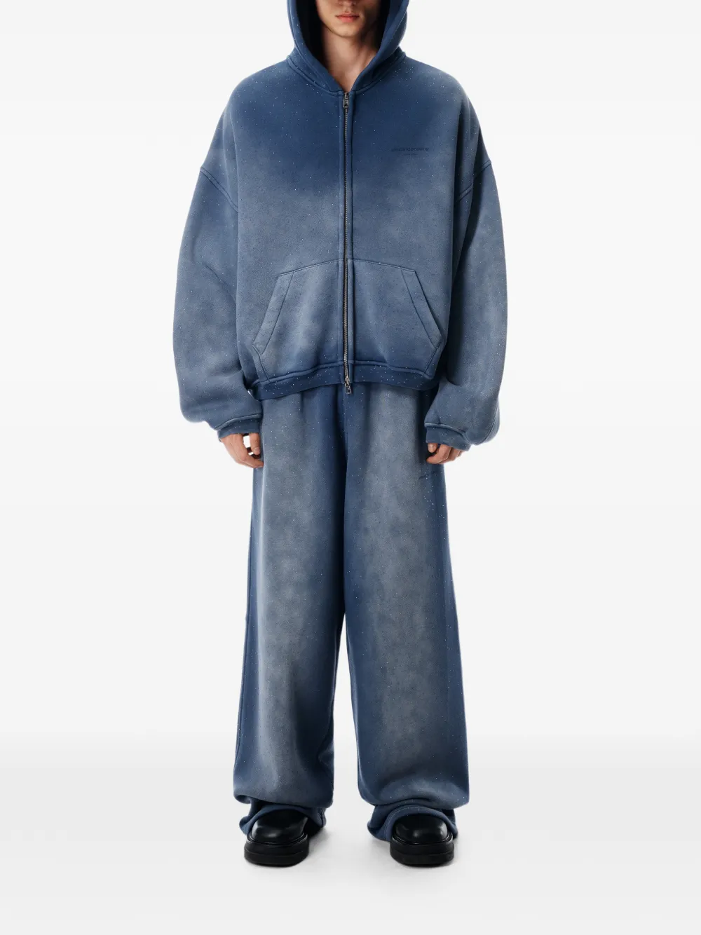 washed navy blue hotfix embellishment terry texture mid-rise relaxed fit elasticated waistband