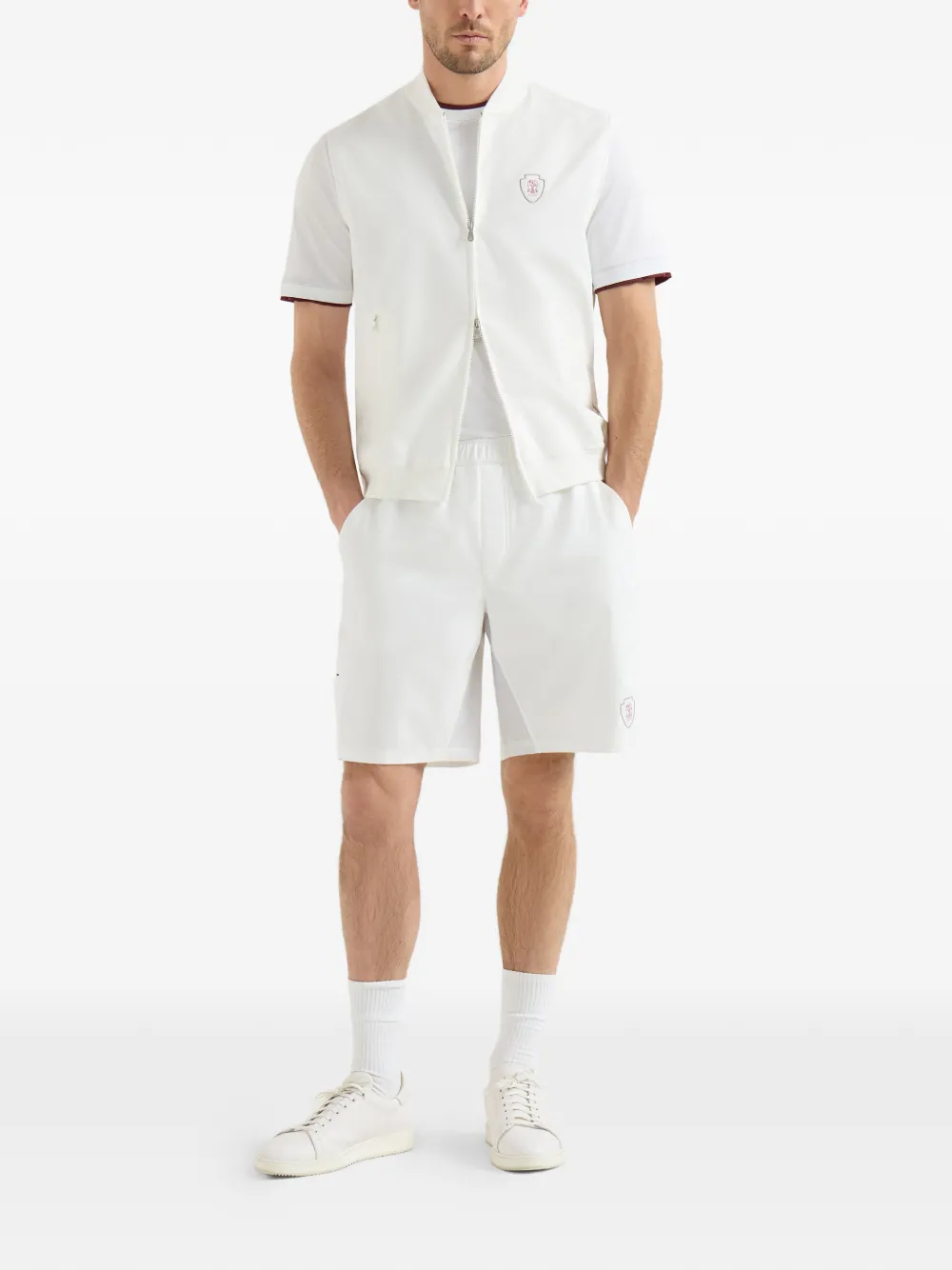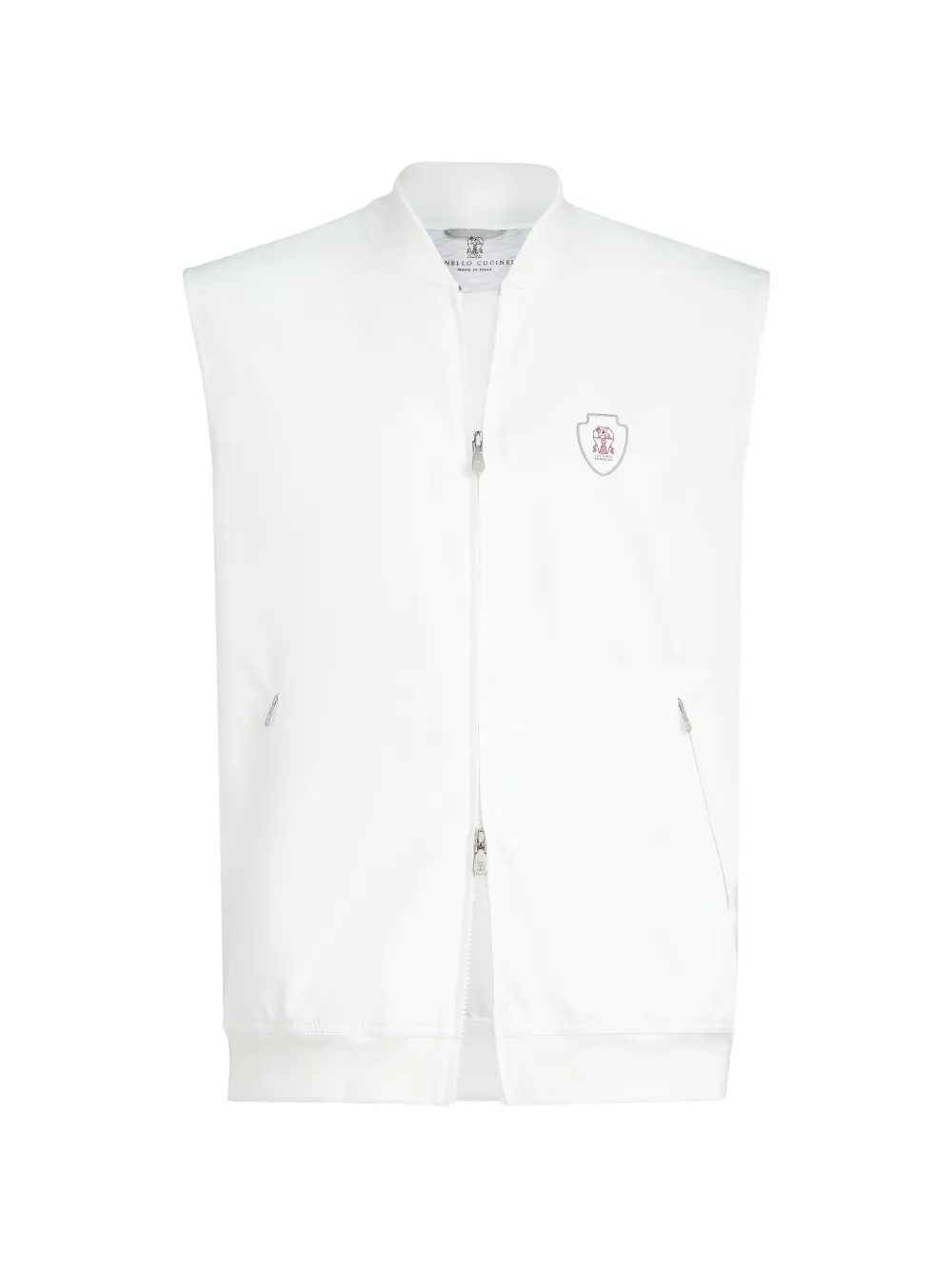 スポーティかつエレガントなテニスの世界観にインスピレーションを得た、メンズウェアコレクションを豊かに彩るアイテム。ナイロンの涼しげな軽やかさが特徴的な、裏地なし一枚仕立てのベスト。レイヤードスタイルに最適な、着回しのきく一着です。レギュラープロポーションのシルエットに、リブ編みのボトムバンドや胸元のロゴなど、アイコニックなブルネロ クチネリのディテールがアクセントを添えています。