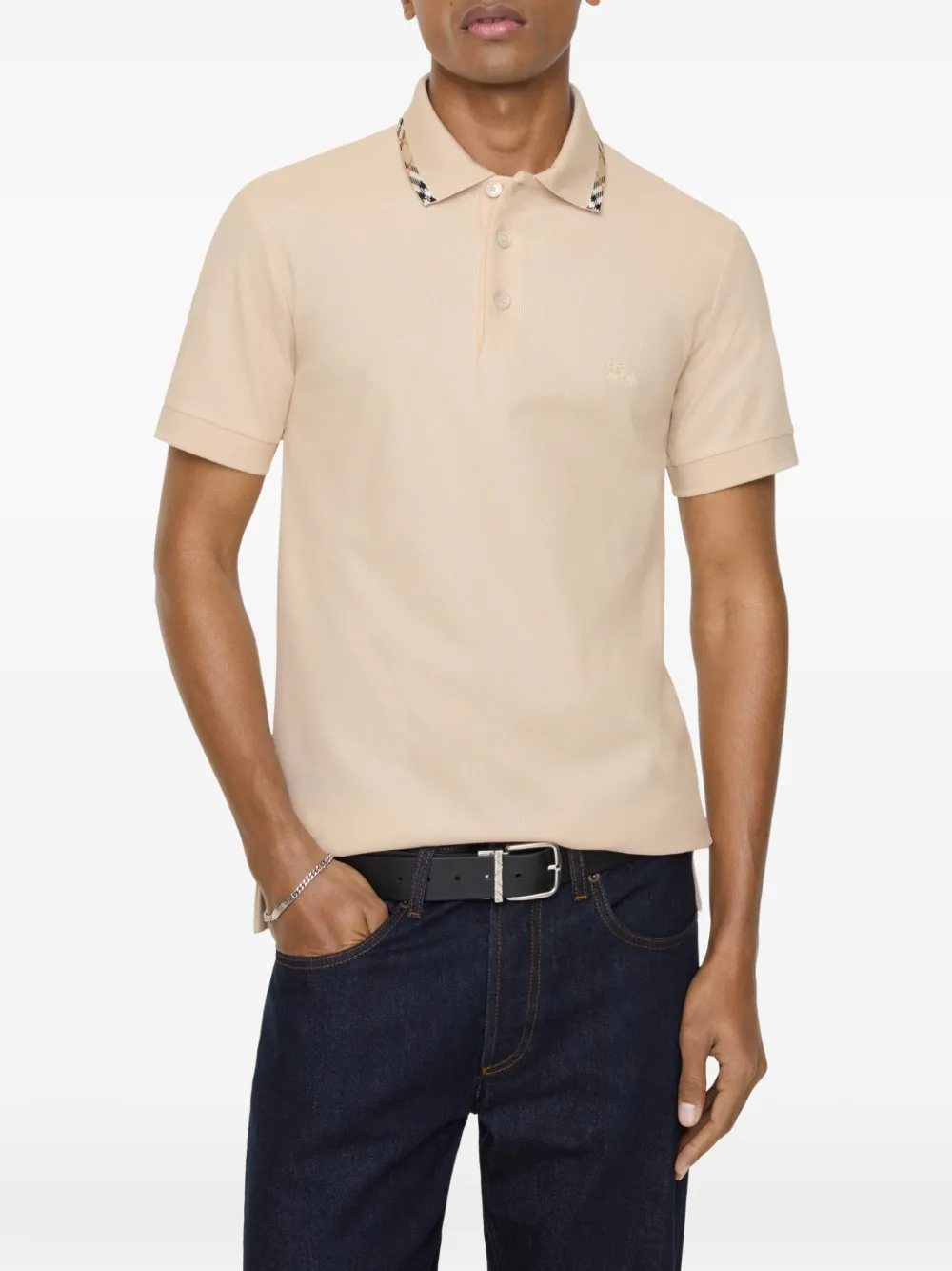 薄手のコットンピケを使用した、スリムフィットのポロシャツ。シグネチャーであるサンドベージュのバーバリーチェックと、馬上の騎士デザインの刺しゅうがデザインを彩ります。フィット感のあるシルエットに仕立てられたスリムフィット。表記サイズ通りのフィットです。通常のサイズをおすすめします。