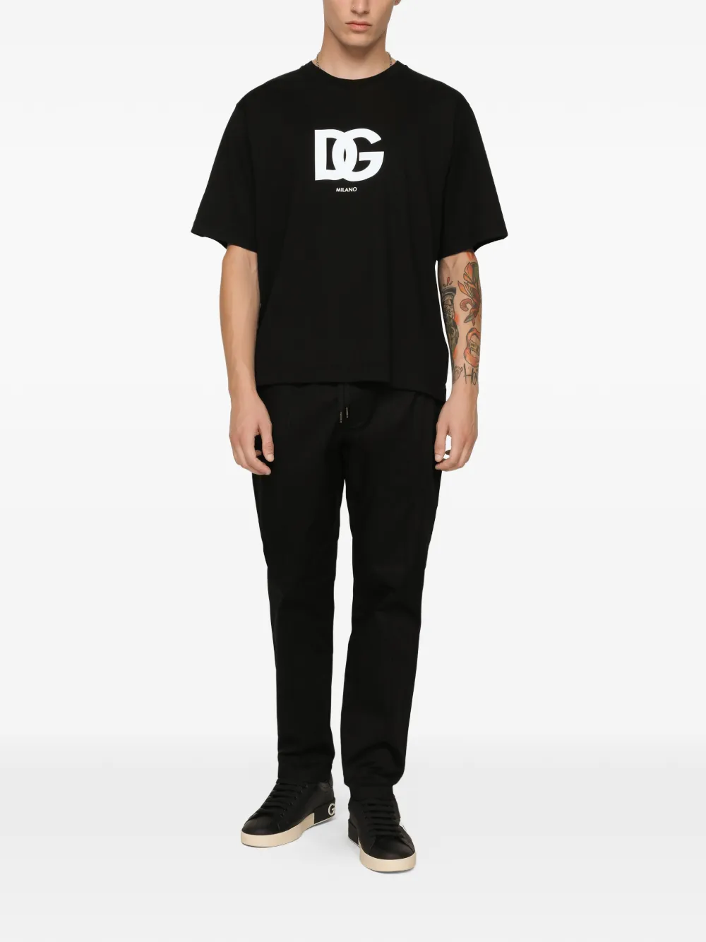 Dolce & Gabbana(ドルチェ & ガッバーナ)の、ロゴ スウェットパンツ(ブラック)。ドローストリング付きの伸縮性ウエストバンド、サイドポケット、リラックスフィット。