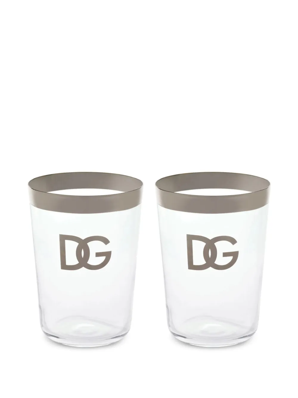 グレー ガラス フロントにロゴプリント コントラストトリム クリアデザイン 2点セット 高さ12cm