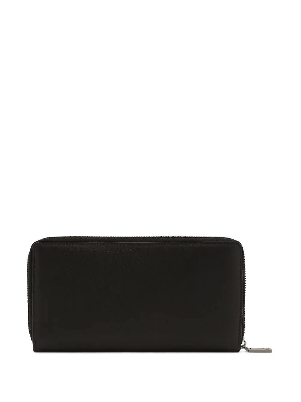 ブラック、カーフレザー、ロゴプレート、ラウンドジップ式開閉、内側にジップポケット、内側にカードスロット。