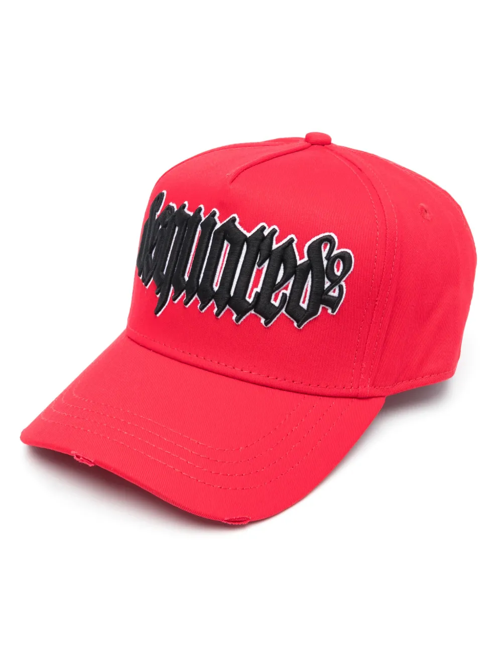 ブリックレッド、コットン、ダメージ加工、ロゴエンブロイダリー、エンブロイダリーモチーフ、6パネル構造、カーブバイザー、バックにバックル。
