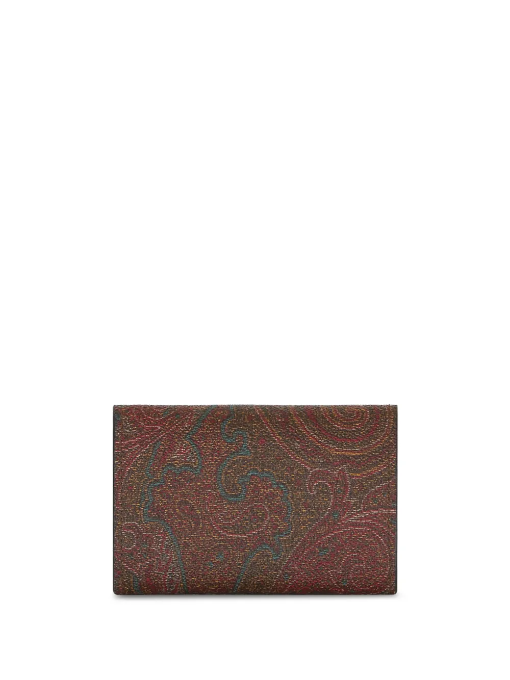 マルーン、マルチカラー、ペガソジャカード、ジャカード、ペイズリープリント、スナップボタン付きフォールドオーバー、内側にカードスロット。