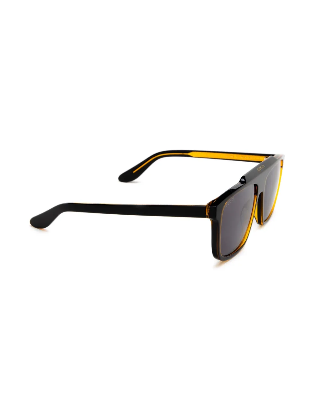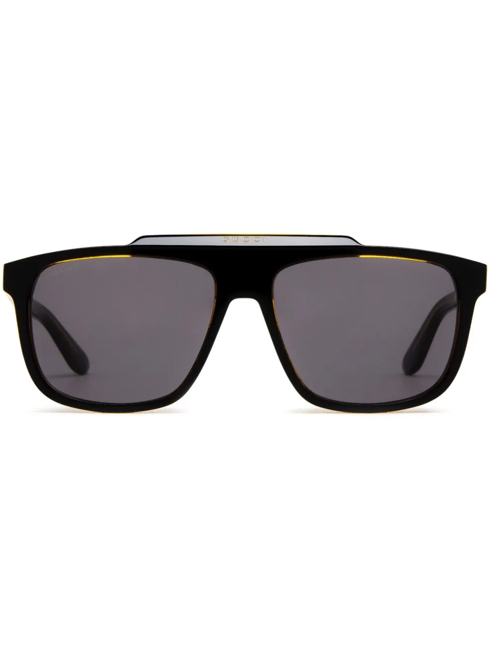 アセテート、ティントレンズ、ゴールドトーンのロゴ、パイロットフレーム。ブラック。こちらの商品には保護ケースが付属しています。