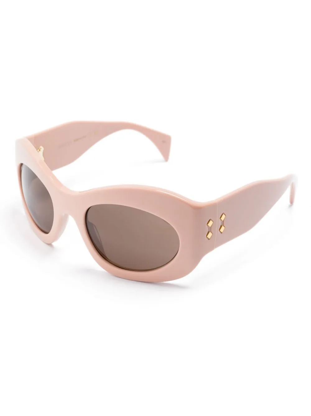 Poudreピンク、アセテート、オーバルフレーム、ティントレンズ、ゴールドトーンのスタッズ装飾、オーバーサイズのテンプル、カーブエンド。こちらの商品には保護ケースが付属しています。