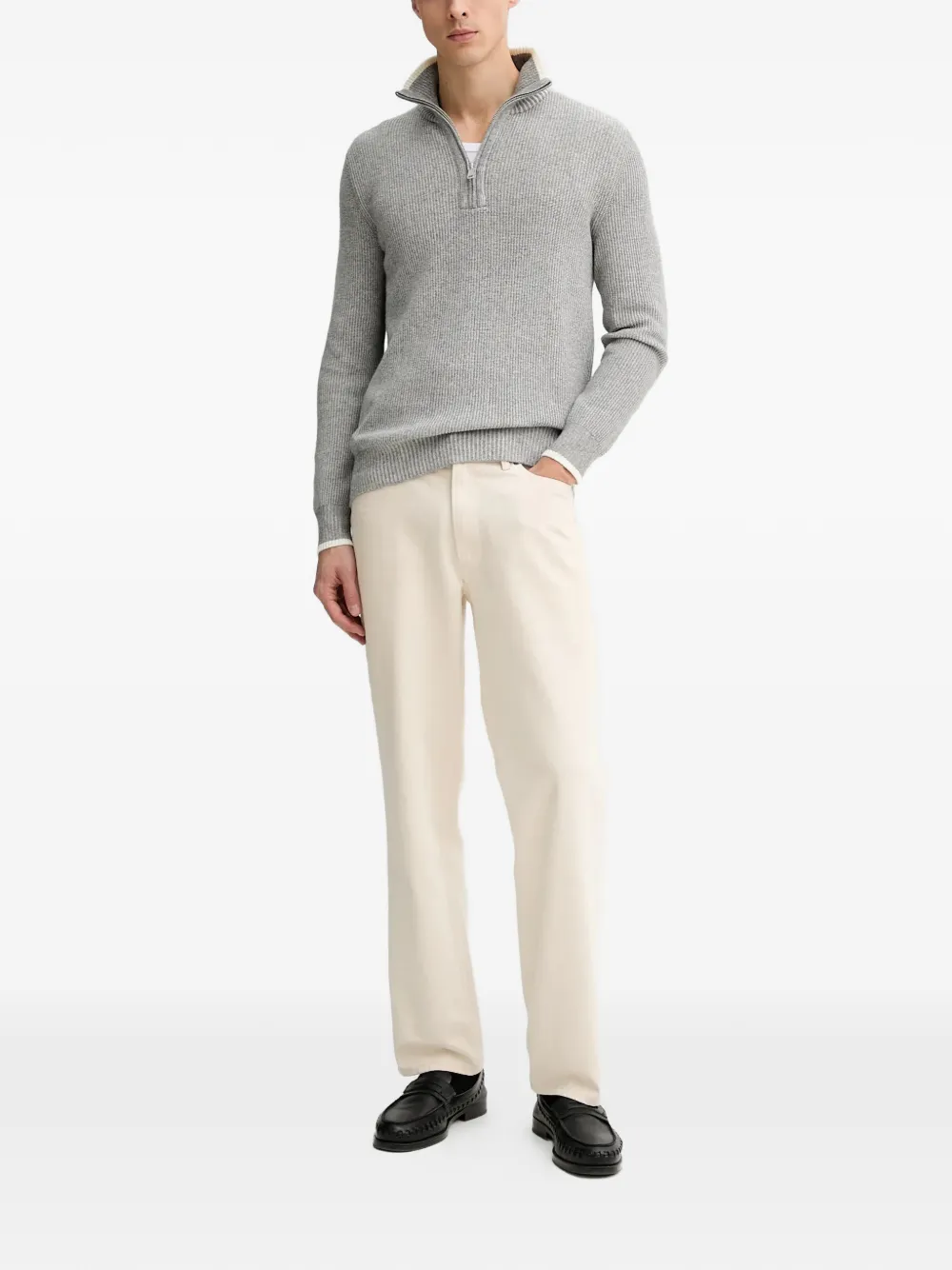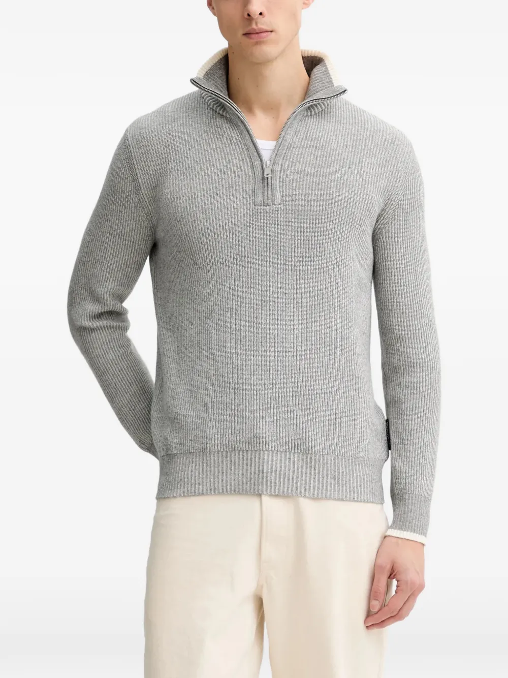 ハーフジップ リブセーター