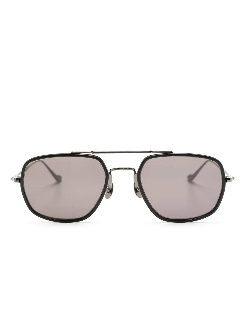 ダークグレー、チタン、アセテート、ティントレンズ、ダブルフレーム、ノーズパッド、ストレートテンプル。こちらの商品には保護ケースが付属しています。