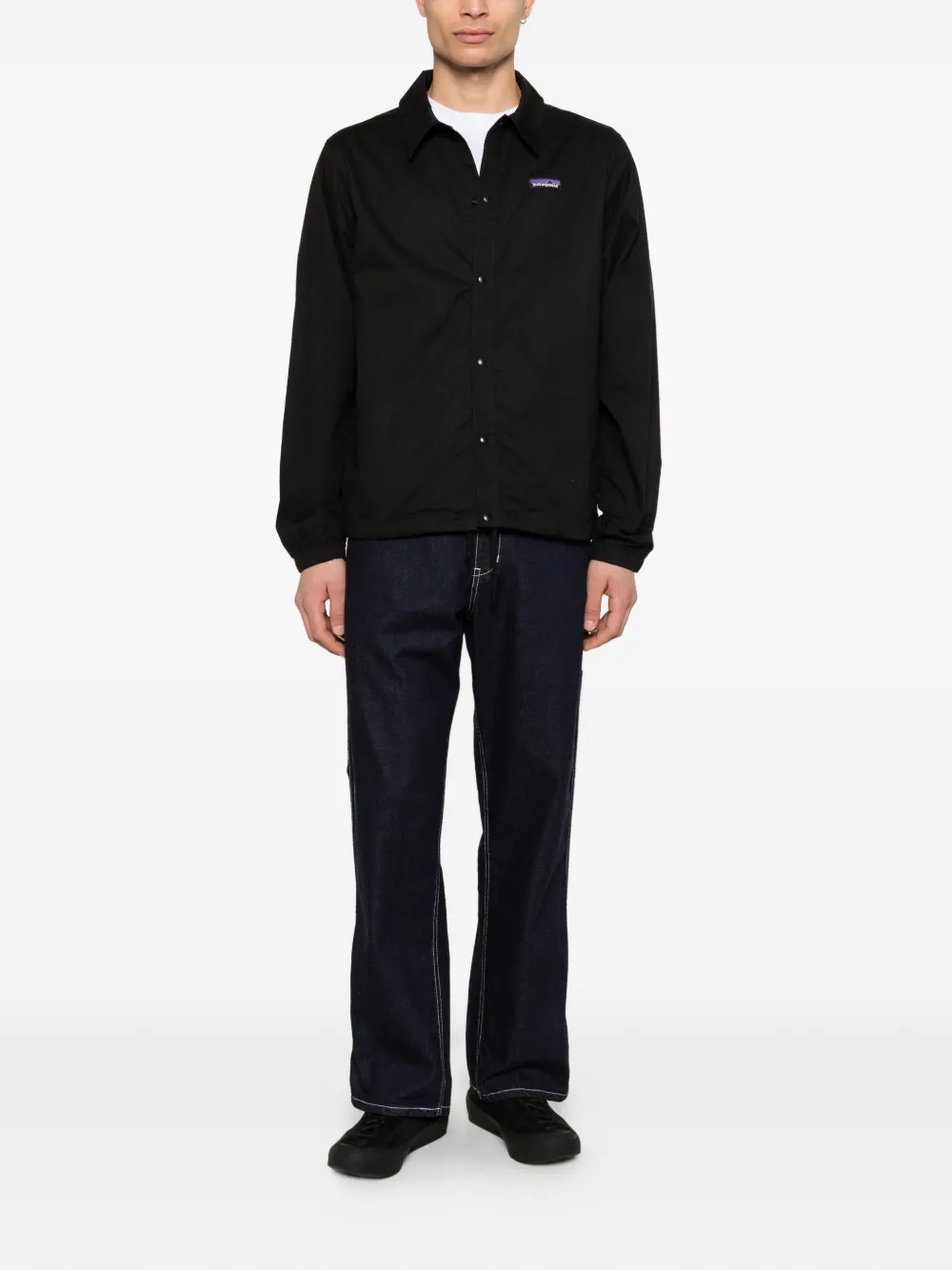 ブラック ロゴパッチ ボタン留め ドローストリングヘム ロングスリーブ ポインテッドカラー