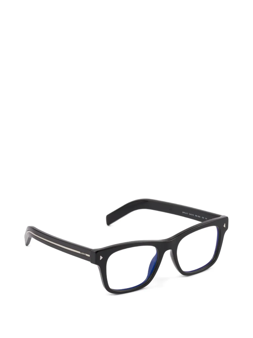 シャープな印象のスクエアフロントに、洗練されたトライアングルリベットが際立つアイウェア。テンプルには、ブランドを象徴するレタリングロゴを配したメタルプレートをあしらいました。