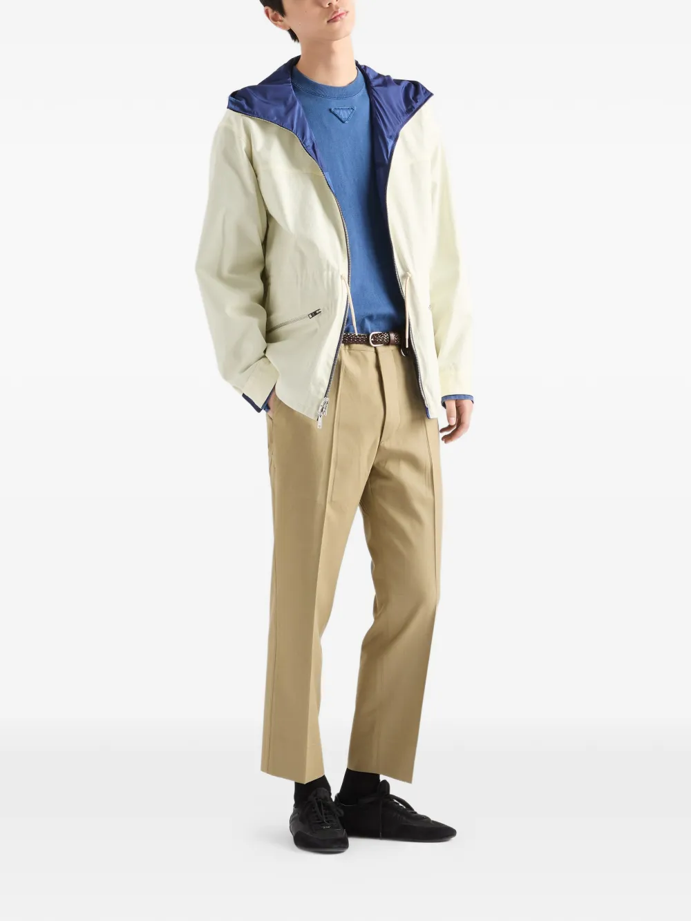 ボクシーなシルエットとクルーネックを備えた長袖コットンTシャツ。同系色のトライアングルロゴの幾何学的なフォルムが、シンプルなデザインを特徴的なスタイルへと昇華させます。