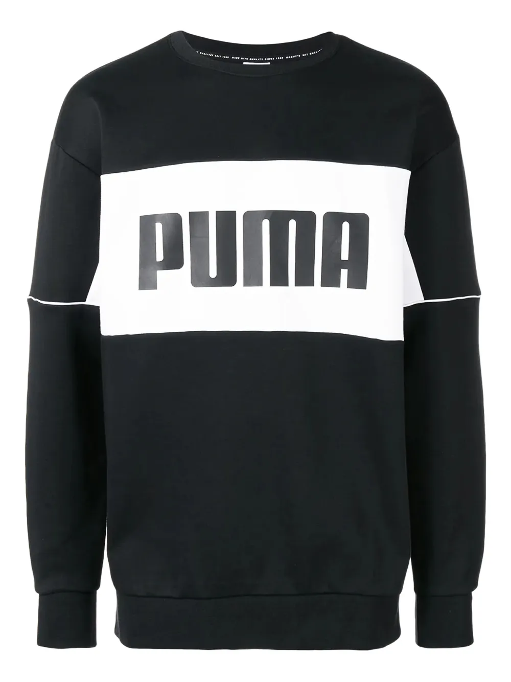 Puma(プーマ)の、プリント スウェットシャツ。クルーネック、長袖、ゆったりフィット、リブ編みのトリム。
