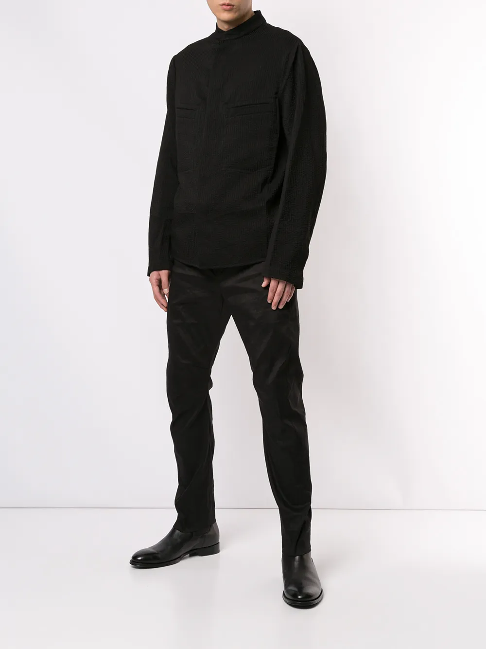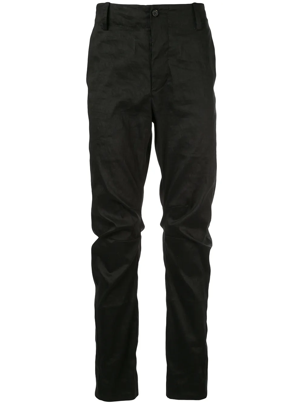 Uma Wang(ユマ・ワン)の、テーラードパンツ(ブラック)。ボタン留め、ベルトループ付きウエストバンド、シワのデザイン、スリムフィット、サイドポケット、背面にポケット。エシカルコンシャス:こちらの商品は、メイン素材の少なくとも50%にオーガニック、リサイクル、アップサイクル素材、または環境に優しいリネン、ラミー、テンセルといったエコフレンドリーな素材を使用しています。
