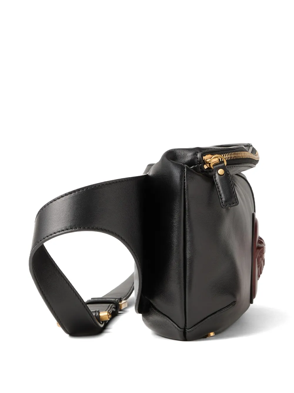 スムースナッパレザーで作られたコンパクトなミディアムサイズの「Lou」ベルトバッグ。瞳の深さや髪の翼のディテールを捉えた立体表現のメドゥーサカメオレザーパッチが中央に配されています。メタルリベットとのコントラストが効いたデザインで、ウエストバッグとしてだけでなく、ショルダーやクロスボディとしてもお使いいただけます。