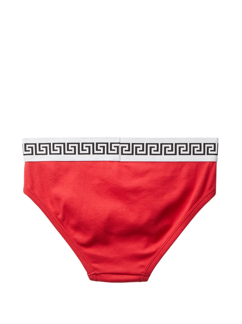 リブ編みのコットンジャージーブリーフ。ウエストバンドには、ジャカード織のグレカ模様とメドゥーサモチーフを中央にあしらいました。衛生管理上、こちらの商品は必ず衣類の上からご試着ください。