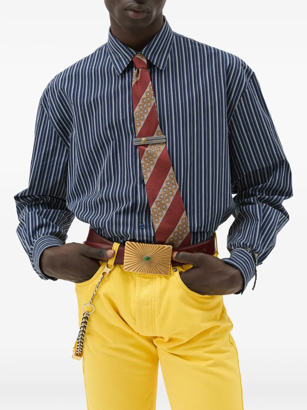 Versaceストライプ コットンポプリン ルーズフィットシャツ