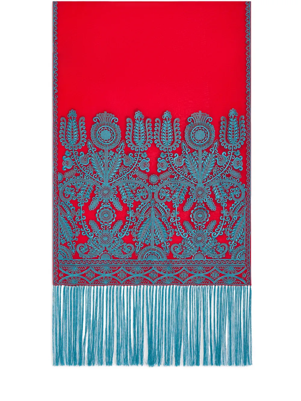 エンブロイダリー フリンジ シルクスカーフ