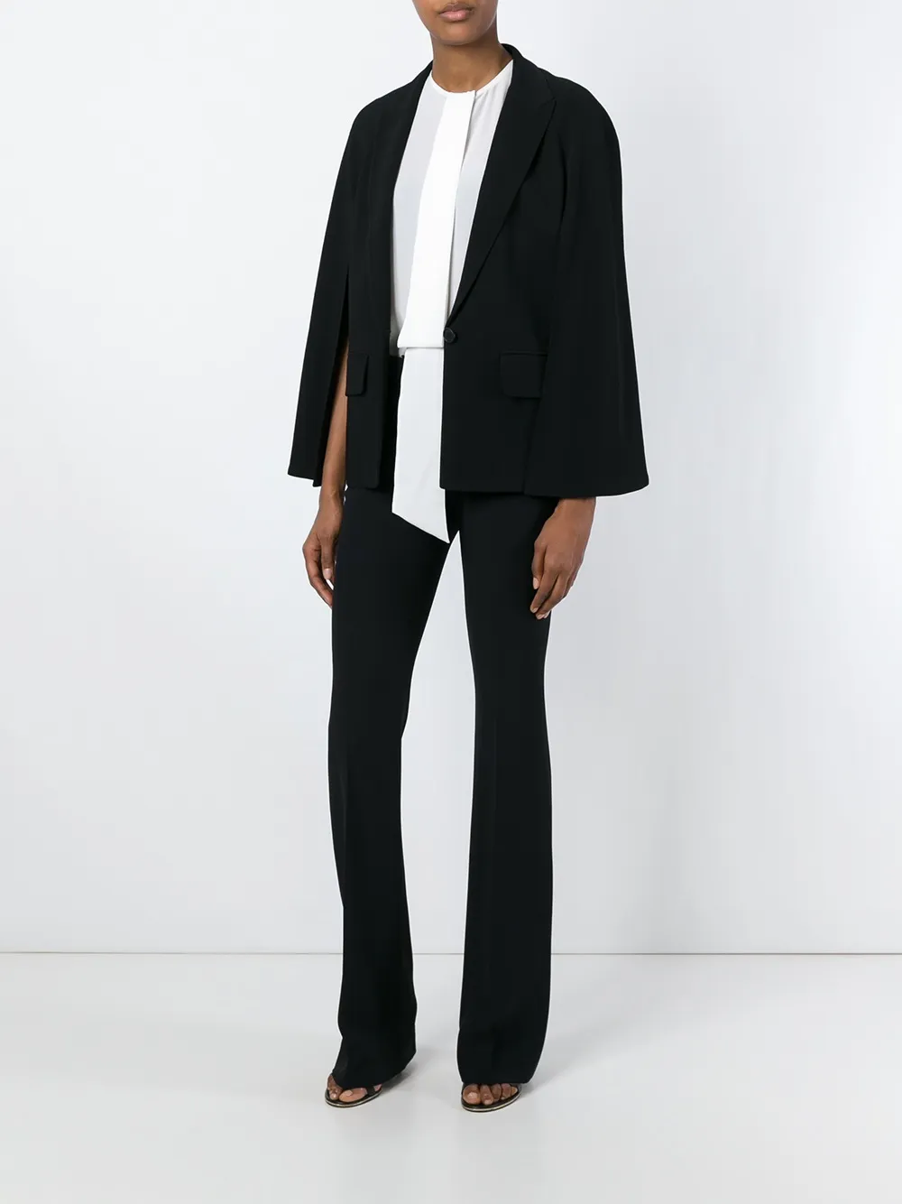 Givenchy(ジバンシィ)の、ケープブレザー(ブラック)。Aラインスタイル、フロントボタン留め、前スリット、ストレートヘム。