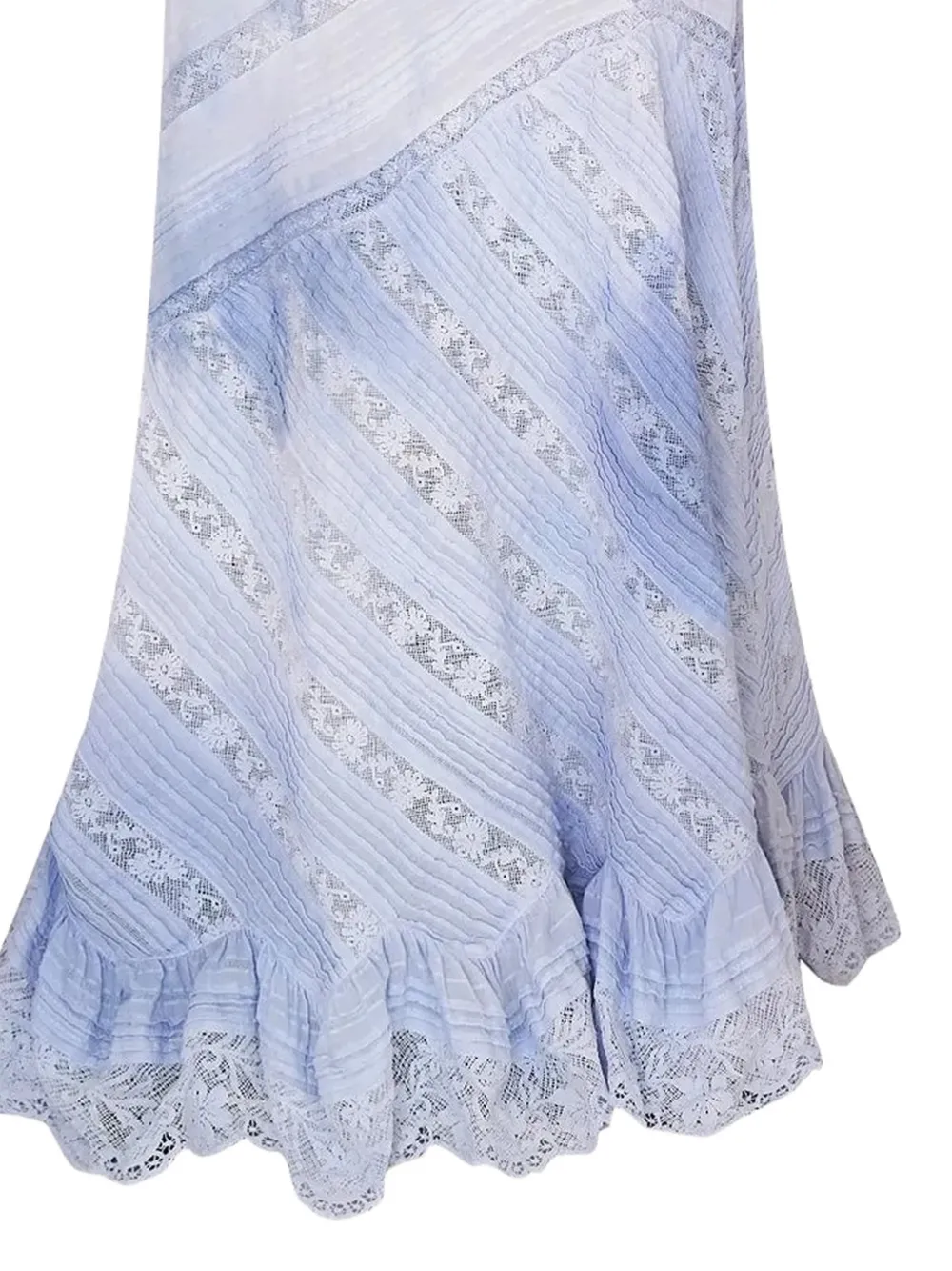 blue tonal design lace trim sweetheart neck spaghetti straps ruffled hem