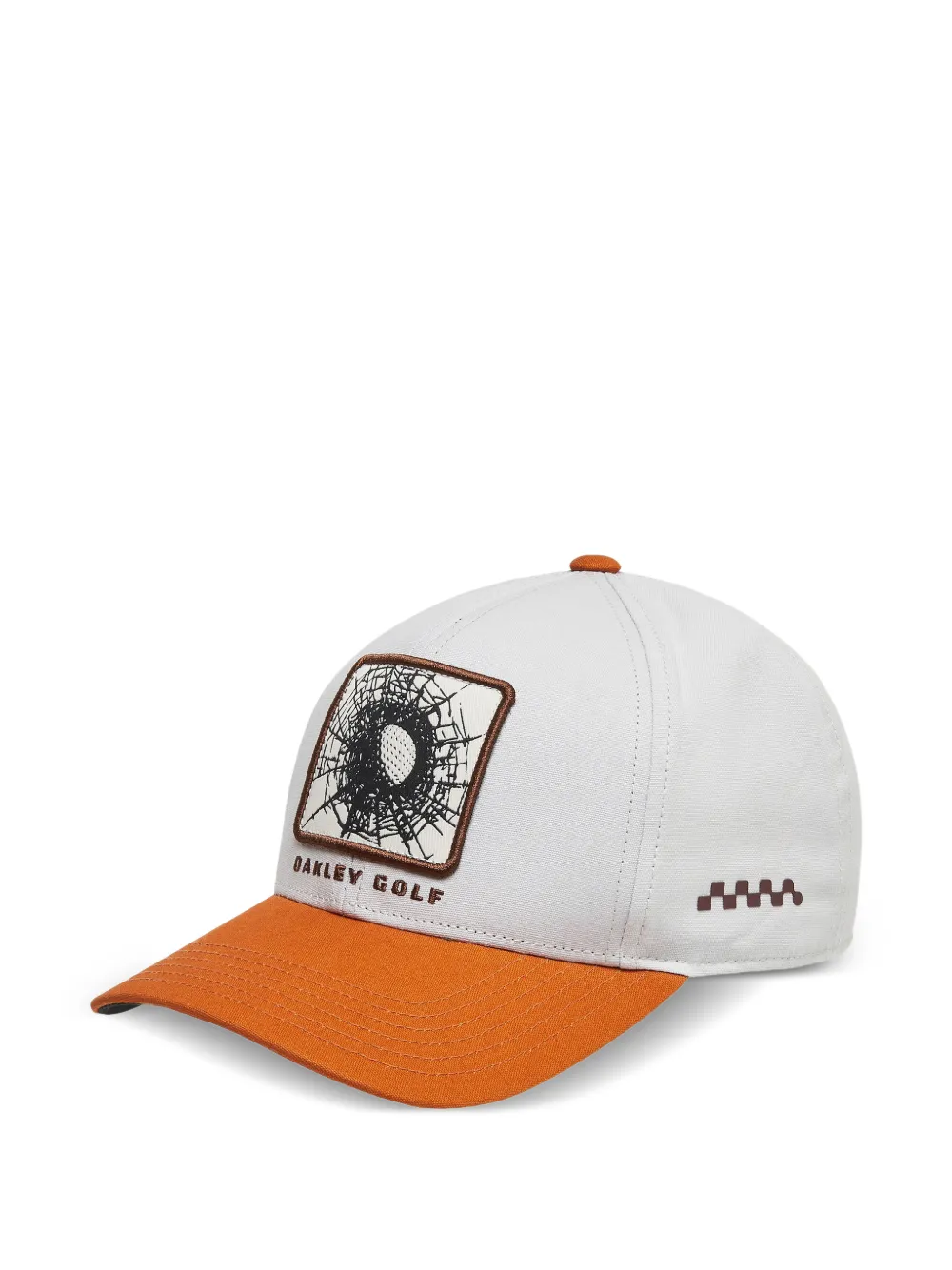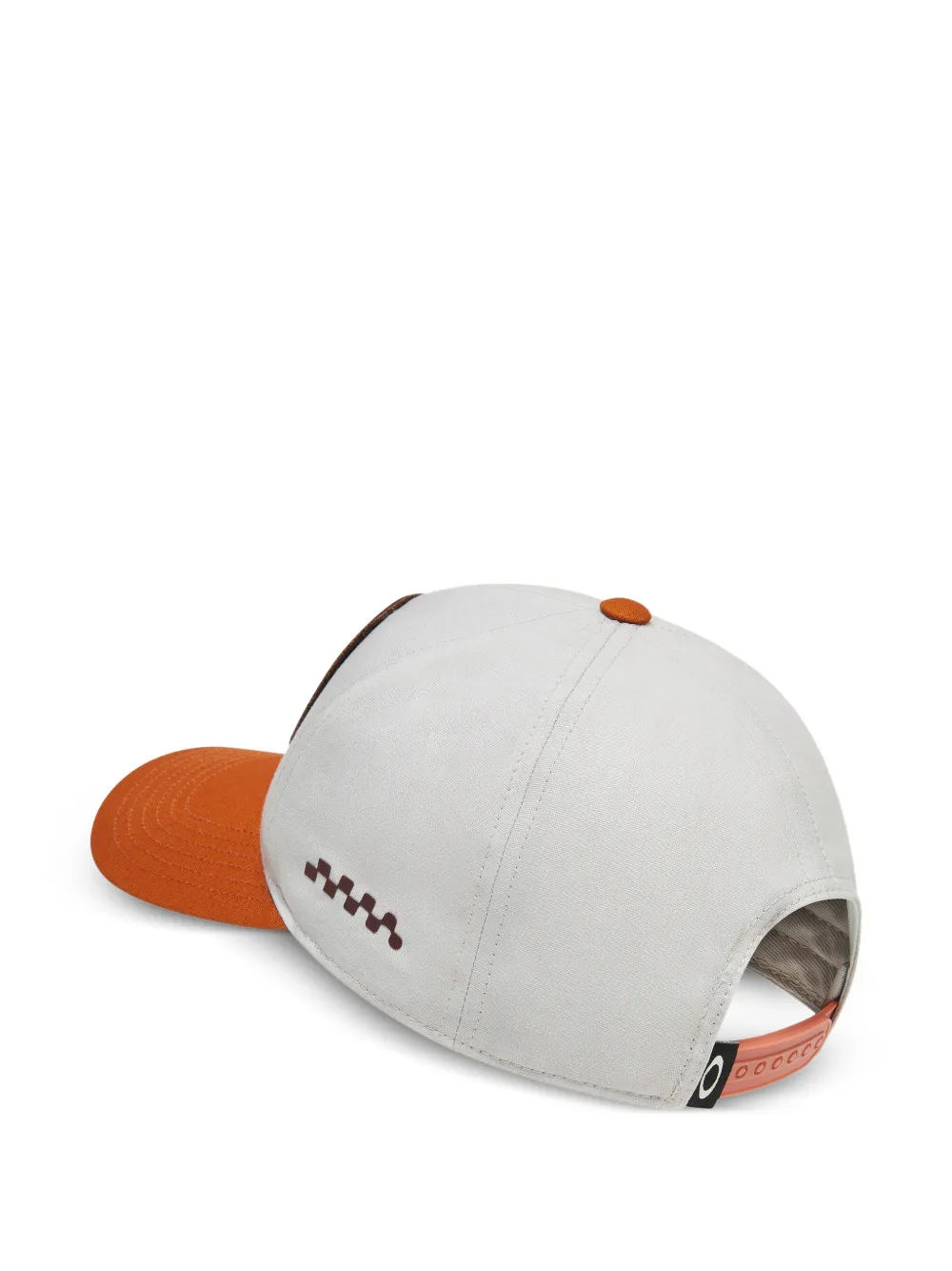 white and orange panelled construction graphic-patch to the front embroidered logo to the side curved peak eyelet vents top button adjustable snap-strap fastening