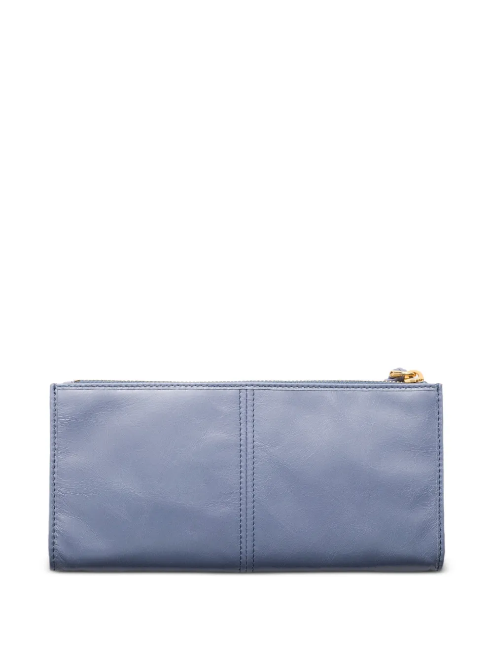 柔らかなレザーで仕立てたなめらかで洗練されたデザインのポーチ。エナメルメタルのトライアングルロゴで飾られています。