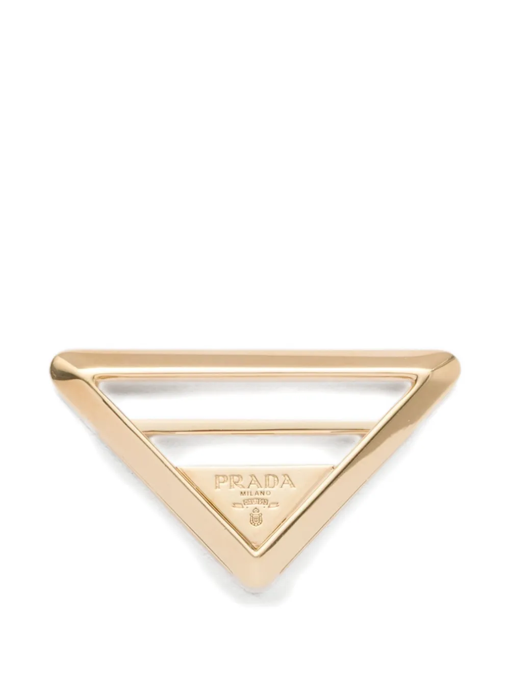 トライアングルロゴのアイコニックなジオメトリックなシェイプが洗練された印象を生み出す、メタルスカーフリング。