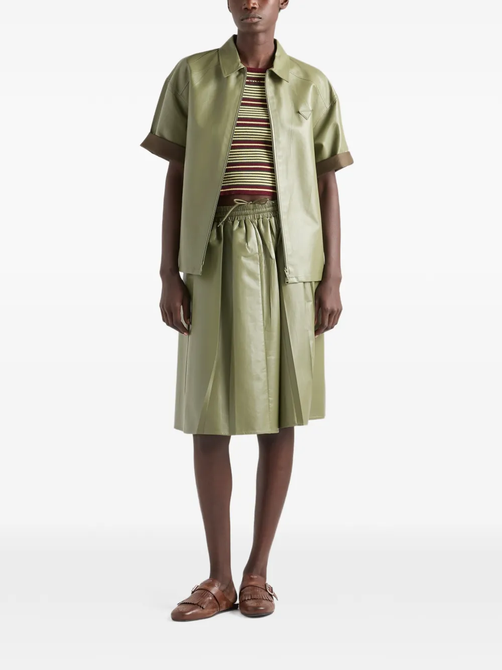 スポーティーなシルエットのショートスリーブシャツを、ミニマルなナッパレザーで洗練されたデザインに再解釈。