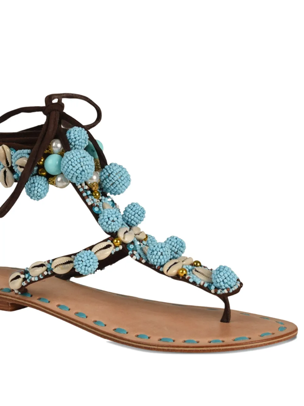 sky blue beaded embellishment shell embellishment wraparound laces flat sole toe post